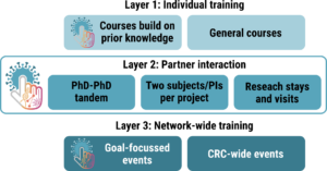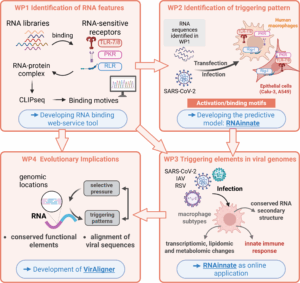 Projects Projects of the CRC 1768 Project A01 Do viruses exploit their quasispecies for host range evolution? Read More Project A02 Phylogeny of functional sequence elements in virus genomes Read More Project A03 Detecting time-resolved and virulence-associated host responses to virus infection Read More Project A04 Harnessing synthetic small RNAs to probe, decode, and optimise phage-host interactions Read More Project B01 Chemical mediators of virus infection Read More Project B02 RNA determinants of the antiviral innate immune response Read More Project B03 Uncovering virus glycoprotein conformational dynamics for rational vaccine design Read More Project B04 Linking macroscopic evolution with molecular processes for rapidly evolving virus pathogens via data-driven inference and simulations Read More Project C01 High-resolution and high-throughput optical detection and characterisation of viruses Read More Project C02 Probe microscopy-based functional tracking of respiratory viruses to identify virus tropism Read More Project C03 Deciphering virus-membrane interactions with advanced optical microscopy and machine learning-supported image analysis Read More Project C04 Raman spectroscopy: A tool for host response and virus characterisation Read More Project Z01 Central Tasks of the Collaborative Research Centre Read More Project Z02 INFormation, INFormatics, and INFrastructure Read More Project Z03 Virus Support Read More Project Z04 Science Communication: Virus impact on human life Read More Project Z05 Integrated Research Training Group (IRTG) Read More