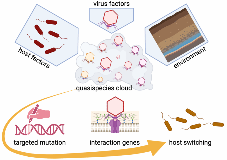2. Virus factors: Viruses with rapid genome evolution have large quasispecies, including those encoding diversity-generating elements such as error-prone polymerases or reverse transcriptase-mediated targeted editing, or temperate bacteriophages with high recombination rates.