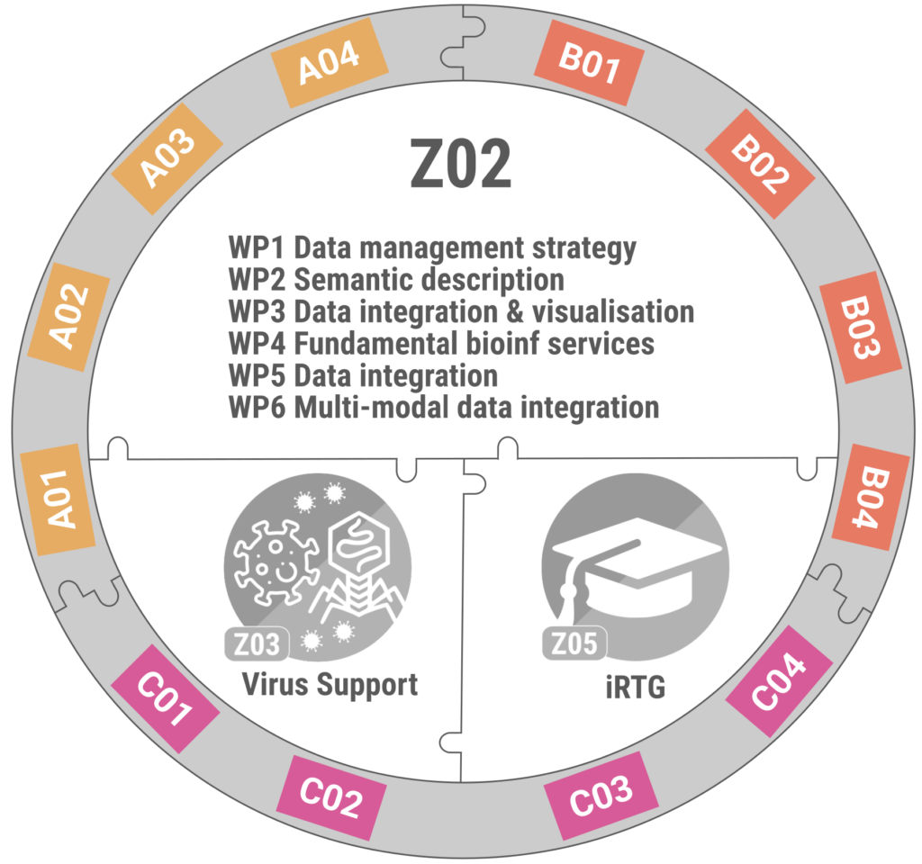 - WP 1 and WP 2 establish the CRC-wide data management strategy and semantic metadata frameworks.