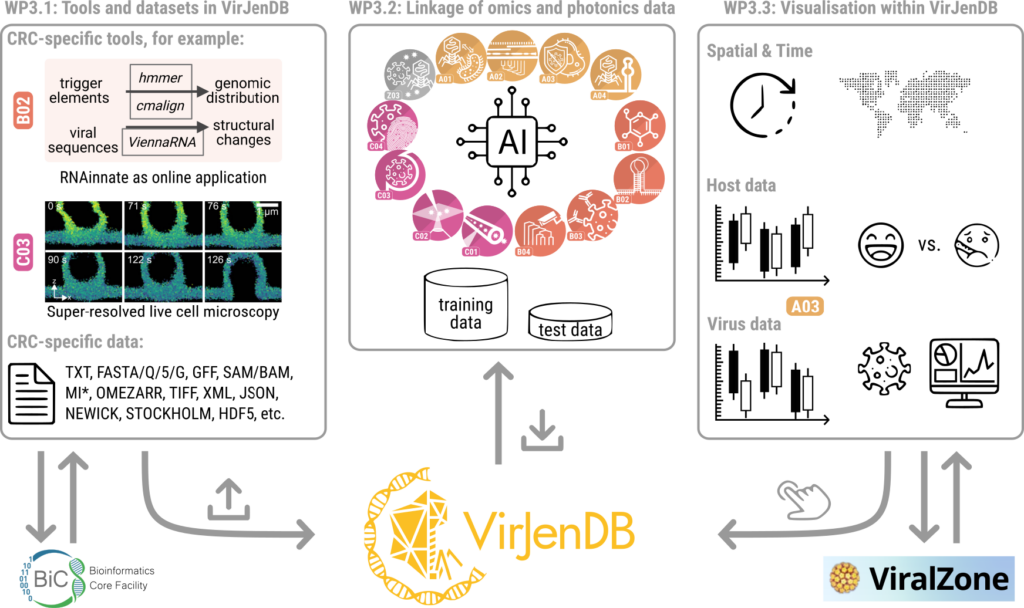 - WP 3: Connecting CRC-specific data, tools, and visualisations within VirJenDB (Cassman)