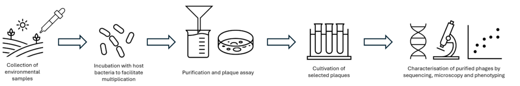 Schematic overview of the isolation and characterisation protocol for bacteriophages.
