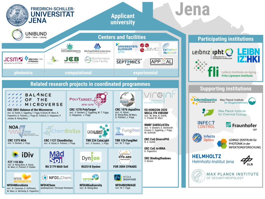 Jena is one of Europe’s leading locations for virus bioinformatics, microscopy, and photonic technologies. Jena hosts an exceptional concentration of scientific infrastructure dedicated to virus research and technology development: